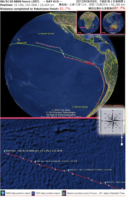 Support has been initiated in Hawaii in anticipation of a brief stopover there in approx. 10 to 12 days. Several boat owners who knew Saito-san at Keehi Marina, the home marina of the previously named "Perigrine," have separately volunteered to help make the necessary arrangements. We greatly appreciate their generous support, and have put them in touch with each other.